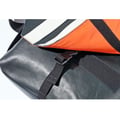 そこで、表裏の本体を組み合わせている繋ぎ目の部分には、ラミネート加工を施した防水の生地を独自にテープ状に加工し、ふちどりを施しました。