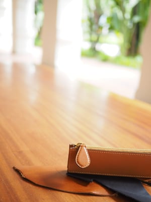 この素材には、イタリアの職人が一枚一枚手作業で染色した、自然な風合いが魅力の高級タンニン革をセレクトしました。