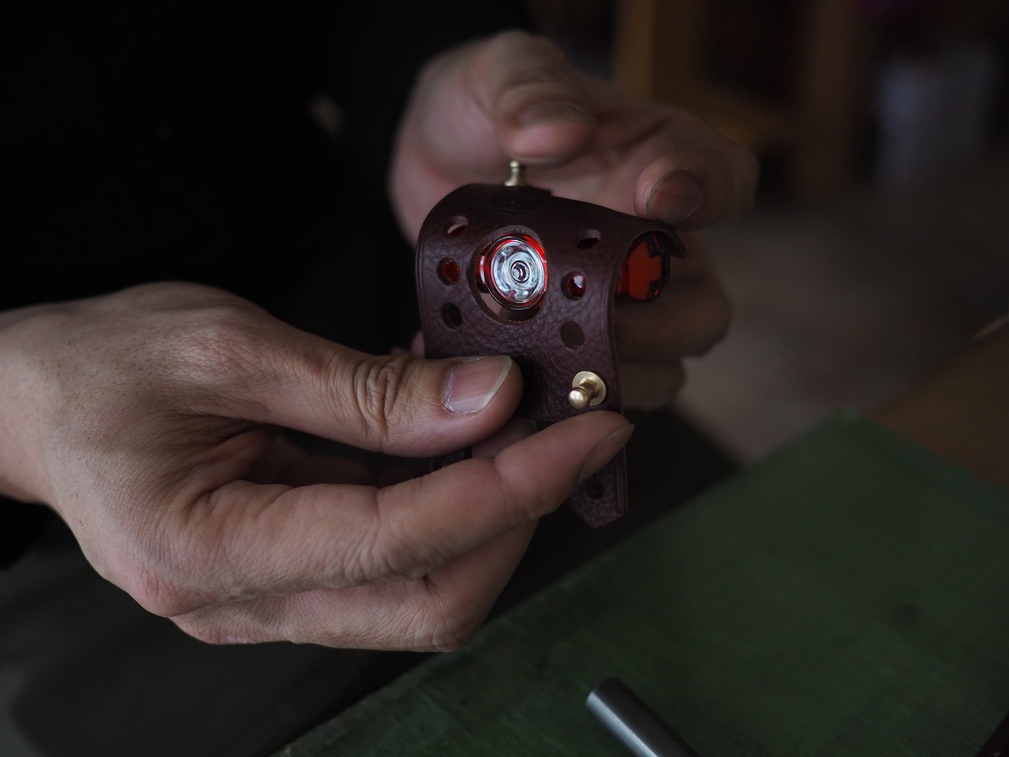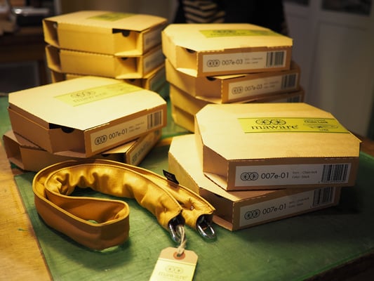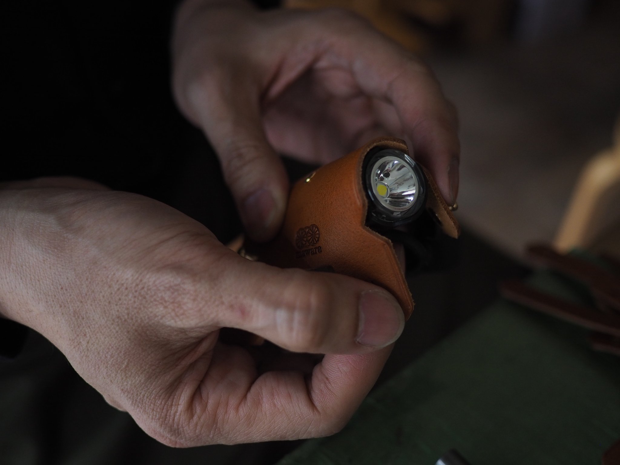 一つひとつのサコッシュを、mawareの職人が手作業で丁寧に組み立てていきます。