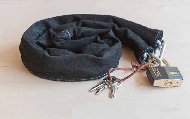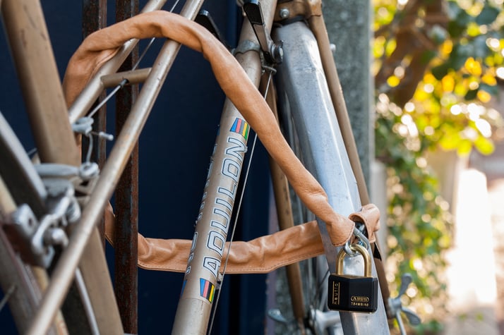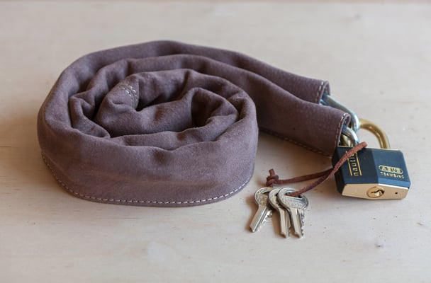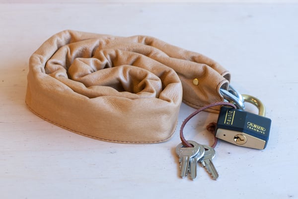 ガラス面を傷から守ることにも使われるピッグスキンの革質は大切な自転車を傷つけることなく盗難から守ります。
